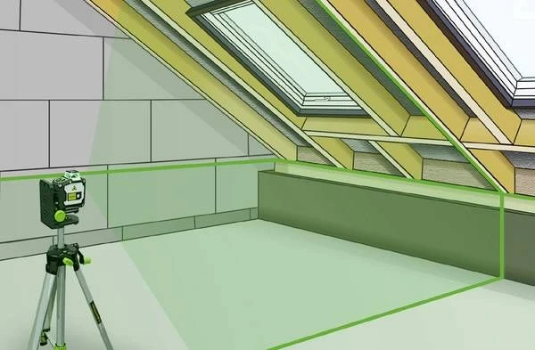Lichte, groene 360°-laser met verticale lijn en neigingsfunctie